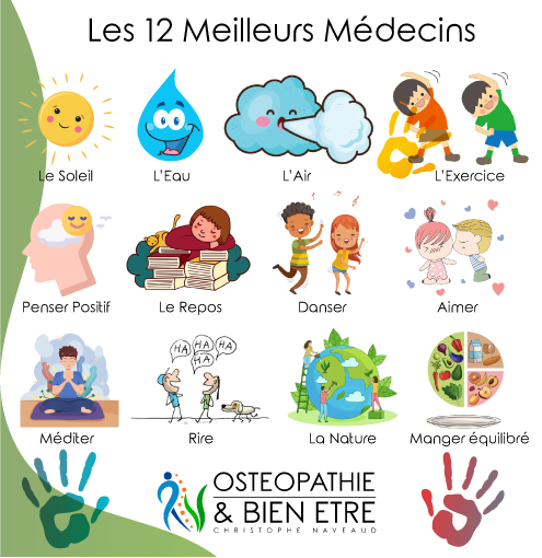 Le soleil, l’eau, l’air, l’exercice, penser positif, le repos, danser, aimer, méditer, rire, la nature et manger équilibré.